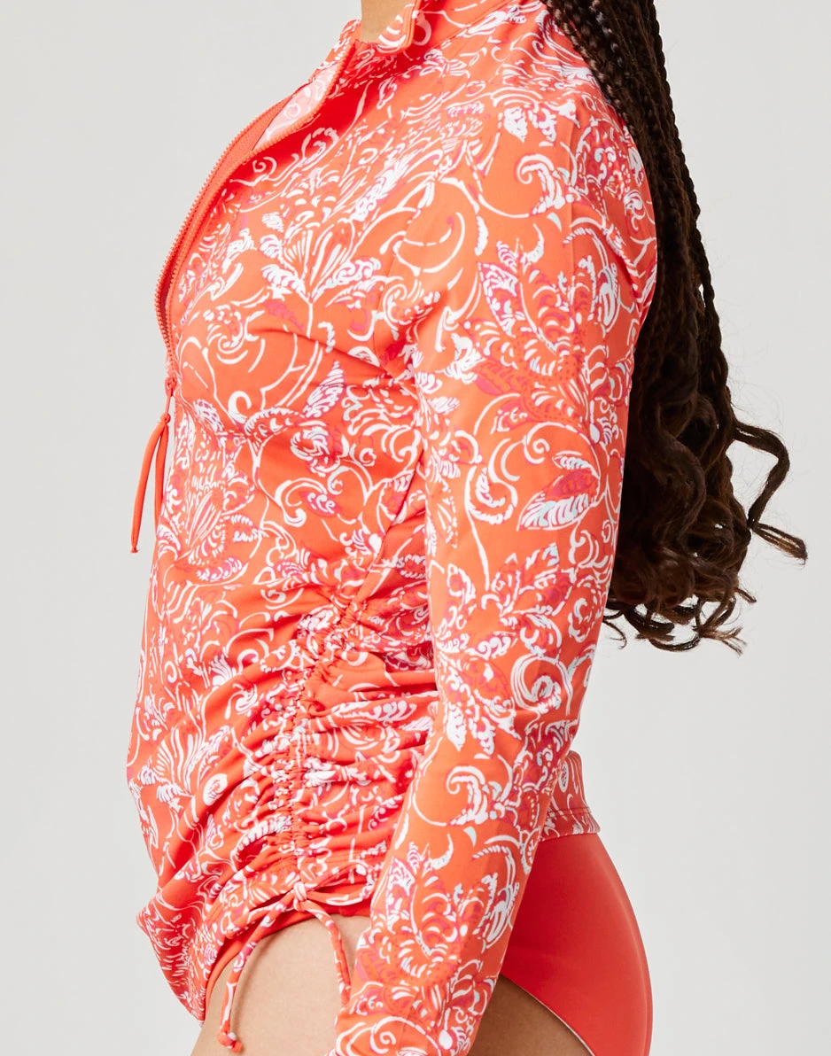 The Cruz rashguard offers lightweight and versatile sun protection with long sleeves for maximum cover up. Quick dry fabric is great for water sports or hiking. Zip neck and shirred sides allow for flattering fitted shape and cooling options.
