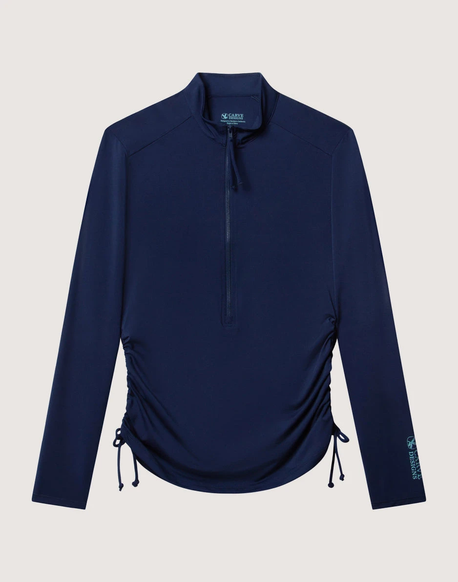 The Cruz rashguard offers lightweight and versatile sun protection with long sleeves for maximum cover up. Quick dry fabric is great for water sports or hiking. Zip neck and shirred sides allow for flattering fitted shape and cooling options.
