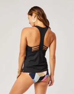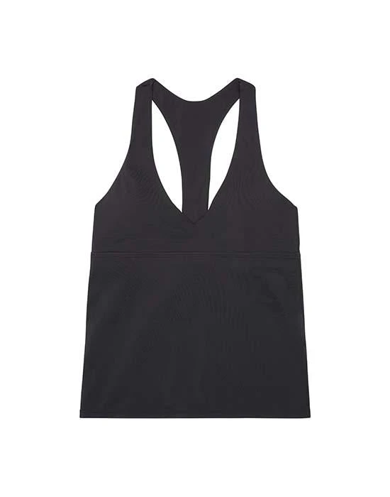 Deep V in front, but sporty in the back, this high support, loose fitting tankini provides fully tummy coverage and is flattering to a variety of body shapes.