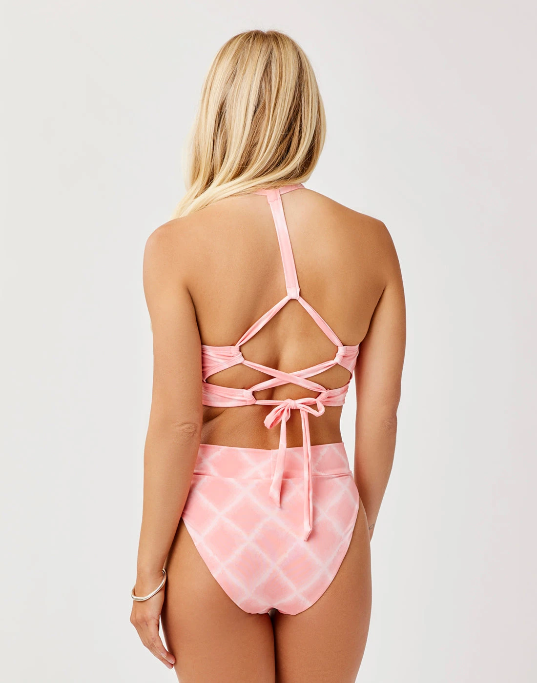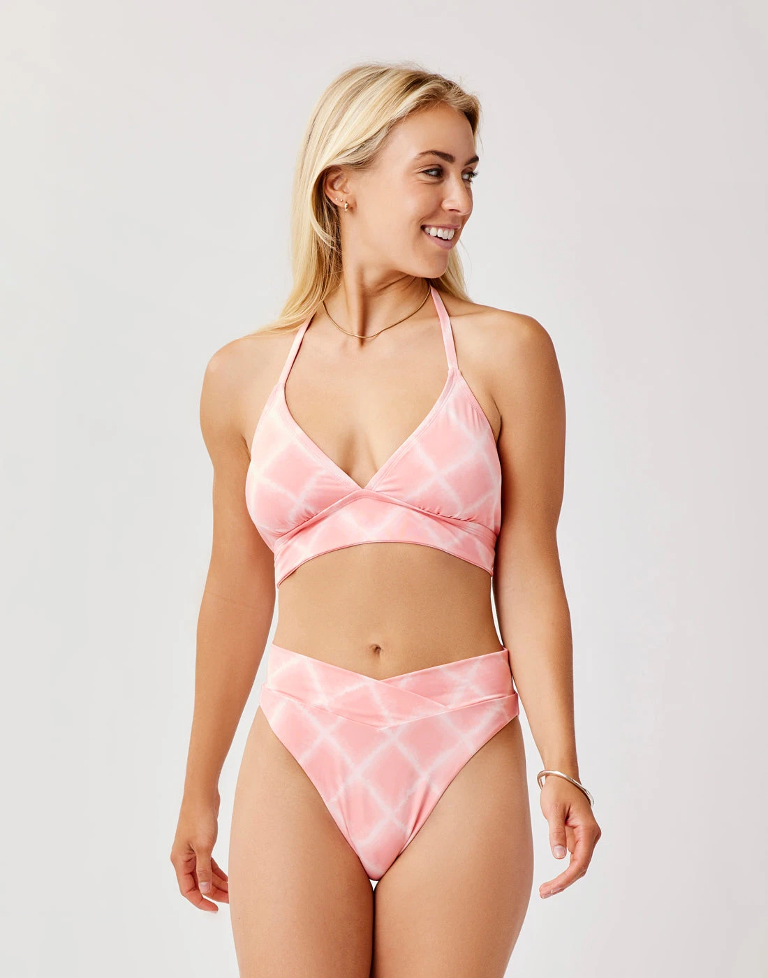 Love at first sight, the Mae dazzles with its Crossover V waistband and wildly flattering medium rise cut. A dabble of retro for modern times. This bottom is great for anyone looking to straddle the line of mid and high rise.