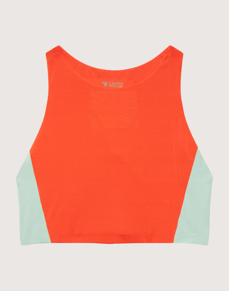 A top that holds tight in waves, wakes, and waterfalls. With a supportive, keeps-it-all-in-place shape, and flirty, flattering details, the Sanitas is one of our fan faves, taking cues from both your favorite sports bra and bikini top. Now in a sporty-meets-sophisticated colorblocked design.